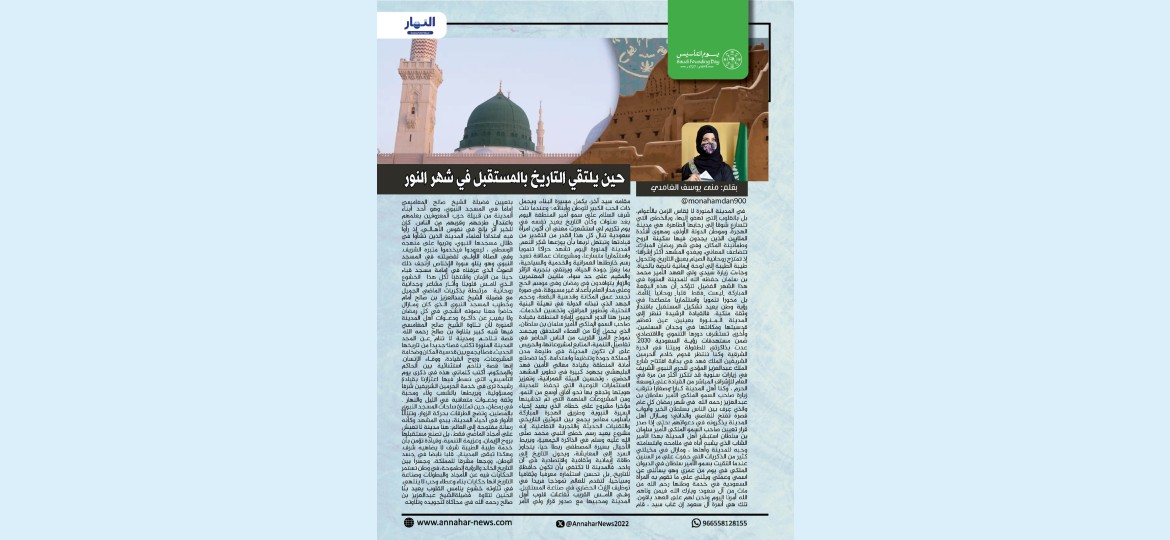 وجاءت زيارة سيدي ولي العهد الأمير محمد بن سلمان حفظه الله للمدينة المنورة في هذا الشهر الفضيل لتؤكد أن هذه البقعة المباركة ليست فقط قلباً روحانياً للأمة، بل محوراً تنموياً واستثمارياً متصاعداً في رؤية وطن يعيد تشكيل المستقبل باقتدار وثقة ملكية. فالقيادة الرشيدة تنظر إلى المدينة المنورة بعينين: عين تعظم قدسيتها ومكانتها في وجدان المسلمين، وأخرى تستشرف دورها التنموي والاقتصادي ضمن مستهدفات رؤية السعودية 2030.