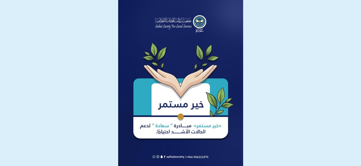 مع حلول شهر رمضان المبارك، أطلقت جمعية سيهات للخدمات الاجتماعية «سعادة» مبادرة «خير مستمر»، في دعوة مفتوحة للمجتمع لتجديد العهد مع قيم الإحسان والعطاء، وتسليط الضوء على الحالات الأشد احتياجًا خلال الشهر الفضيل، باعتباره موسمًا تتجلى فيه أسمى معاني التكافل المجتمعي.