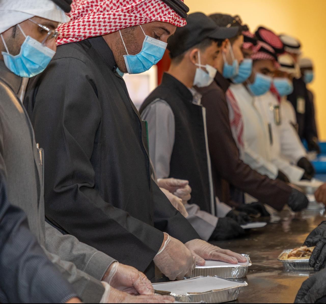 واطّلع خلال الجولة على آلية سير العمل وإجراءات إعداد وتجهيز الوجبات، مستمعًا إلى شرحٍ عن مراحل التنفيذ وآلية التوزيع، كما شارك القائمين على المشروع في تجهيز وجبات الإفطار للمستفيدين.