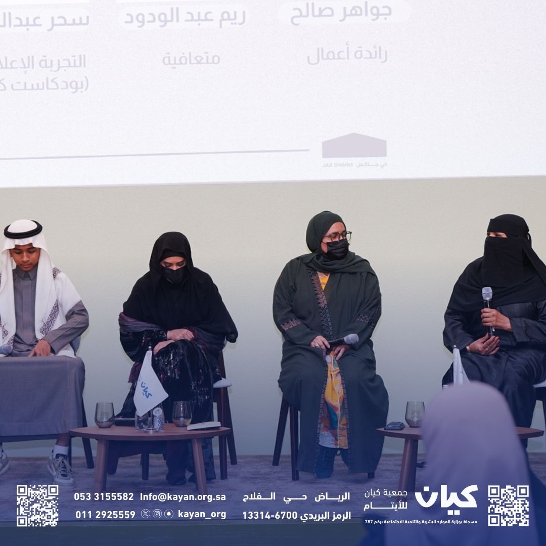 بعد ذلك كانت الجلسة الحوارية التي جاءت بعنوان (هم الإلهام ونحن الفخرـ2) التي تسلط الضوء على نماذج مشرقة من أبناء كيان الذين صنعوا لأنفسهم طريقًا نحو النجاح. وأدار الحوار "المرشد النفسي يوسف الجاسم" حيث يحاور أربعة من أبناء كيان الناجحين مهنيًا واجتماعيًا، للحديث عن تجاربهم النفسية والاجتماعية، والتحديات التي واجهوها، وكيف استطاعوا تجاوزها وتحويلها إلى قصص نجاح ملهمة وهم: (وليد يوسف تجربة الابتعاث) (جواهر عبد الله مسار مهني) (ريم عبد الودود متعافية من السرطان) (سحر عبد العزيز التجربة في السياحة). وقد استمتع الحضور وقضوا وقتا ممتعا في رحلة مليئة بالتجارب المتنوعة، وقصص الأمل والإنسانية، التي أثبتت أن الطموح يصنعه الإرادة والتعلم المستمر. وأن التعليم يحول التحديات إلى إنجازات مشرّفة.