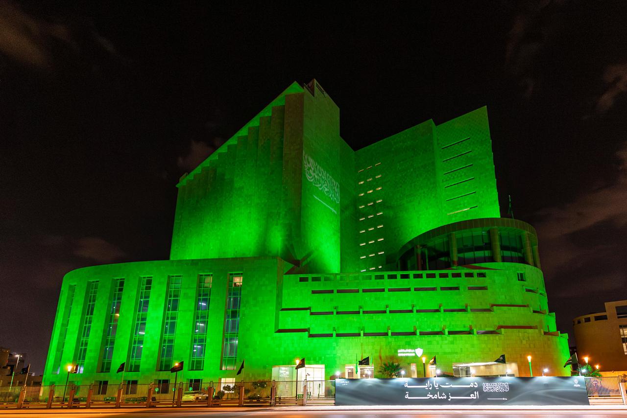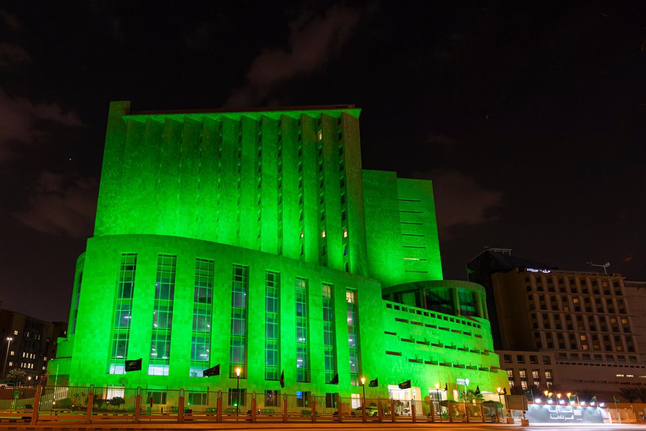 اكتسى مقر ديوان المظالم في الرياض بإضاءات اللون الأخضر، وتوشّح بالأعلام السعودية؛ بمناسبة يوم العلم السعودي الذي يوافق 11 مارس 2026م، مشاركةً منه في هذه المناسبة الوطنية العزيزة وما تحمله من رمزيةٍ للانتماء إلى المملكة في نفوس مواطنيها.