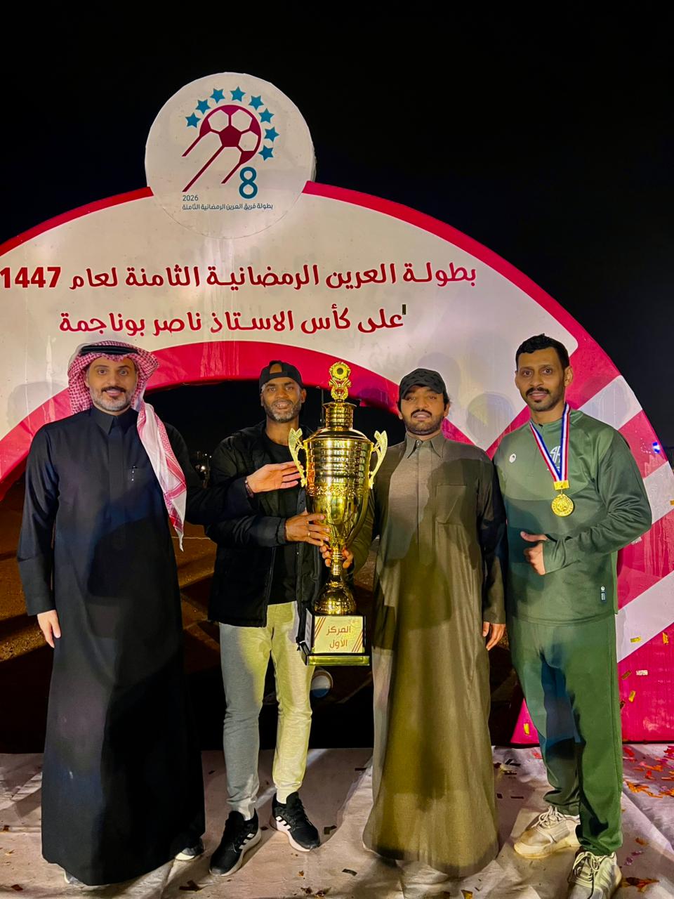 اختتمت منافسات بطولة العرين الرمضانية في نسختها الثامنة لعام 1447 هـ بالهفوف على كأس الاستاذ ناصر بو ناجمة والذي تَوَّج فريق السالمية بكأس المركز الأول وذلك بعد فوزه على فريق كاظمة في المباراة النهائية وبركلات الترجيح بعد أن انتهت في وقتها الأصلي بتعادل إيجابي بهدف لكلٍ منهما تقدم كاظمة أولاً عن طريق لاعبه عامر الدوسري فيما كان الرد من السالمية بالتعادل في الدقائق الأخيرة من عمر المباراة سجله اللاعب سالم الشكل وامتدت ركلات الترجيح الى 12 ركلة حتى حسمها حارس السالمية عبد المحسن الدوسري بتصديه لركلة وتسجيل زميله محمد المغربي الركلة الأخيرة .