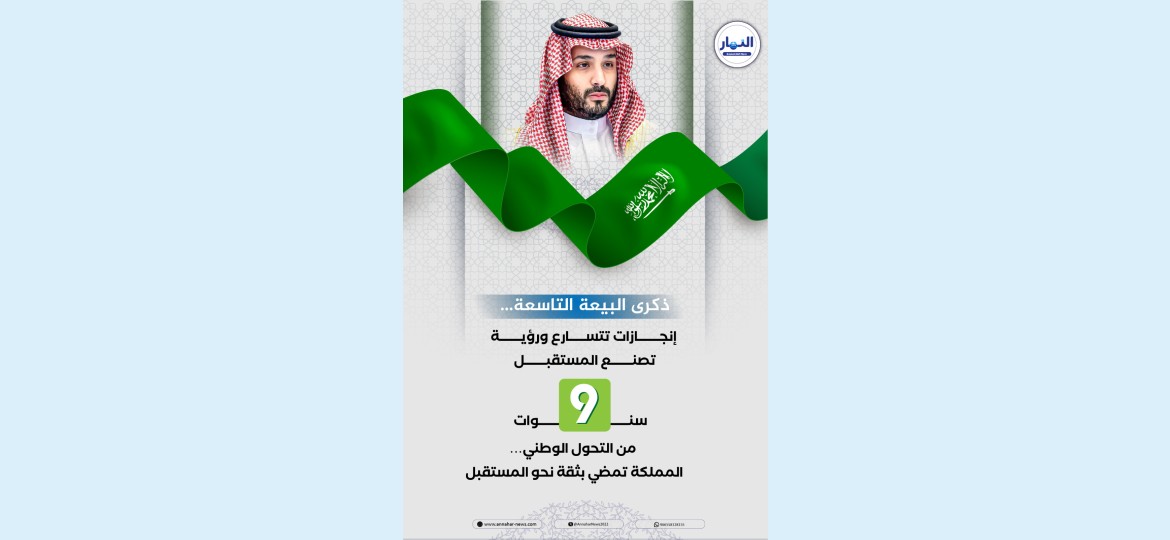 تتجدّد في المملكة العربية السعودية مشاعر الاعتزاز والوفاء مع حلول ذكرى البيعة التاسعة لسمو ولي العهد رئيس مجلس الوزراء الأمير محمد بن سلمان آل سعود -يحفظه الله- ، وهي مناسبة وطنية تستحضر مرحلة فارقة في تاريخ الدولة السعودية الحديثة، شهدت خلالها البلاد تحولات استراتيجية عميقة على المستويات الاقتصادية والتنموية والاجتماعية، في ظل قيادة خادم الحرمين الشريفين الملك سلمان بن عبدالعزيز آل سعود-يحفظه الله-.