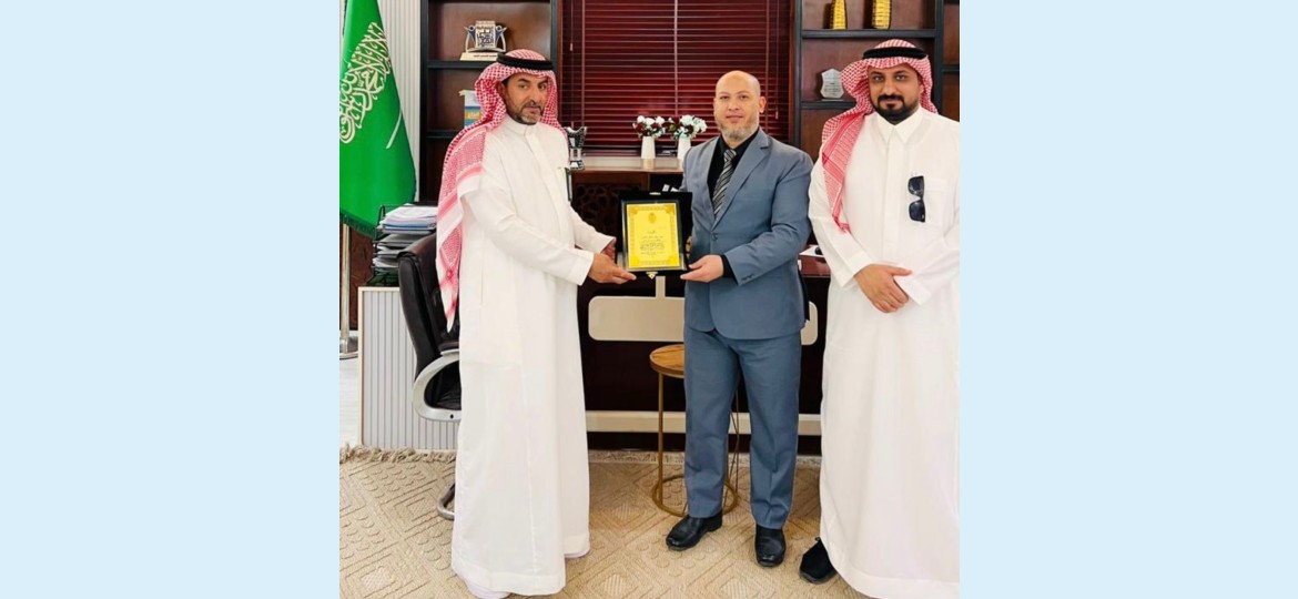 كرّم سعادة المهندس عبدالله صالح الخريجي، نائب مدير عام المركز الوطني لتنمية الغطاء النباتي ومكافحة التصحر، مدارس نخبة الشمال العالمية والأهلية بمحافظة رفحاء، ممثلة في الأستاذ : محمد نصر الدين – مدير القسم المتوسط والثانوي – وذلك تقديرًا لمشاركتها الفاعلة وجهودها المتميزة في دعم مبادرات موسم التشجير الوطني.