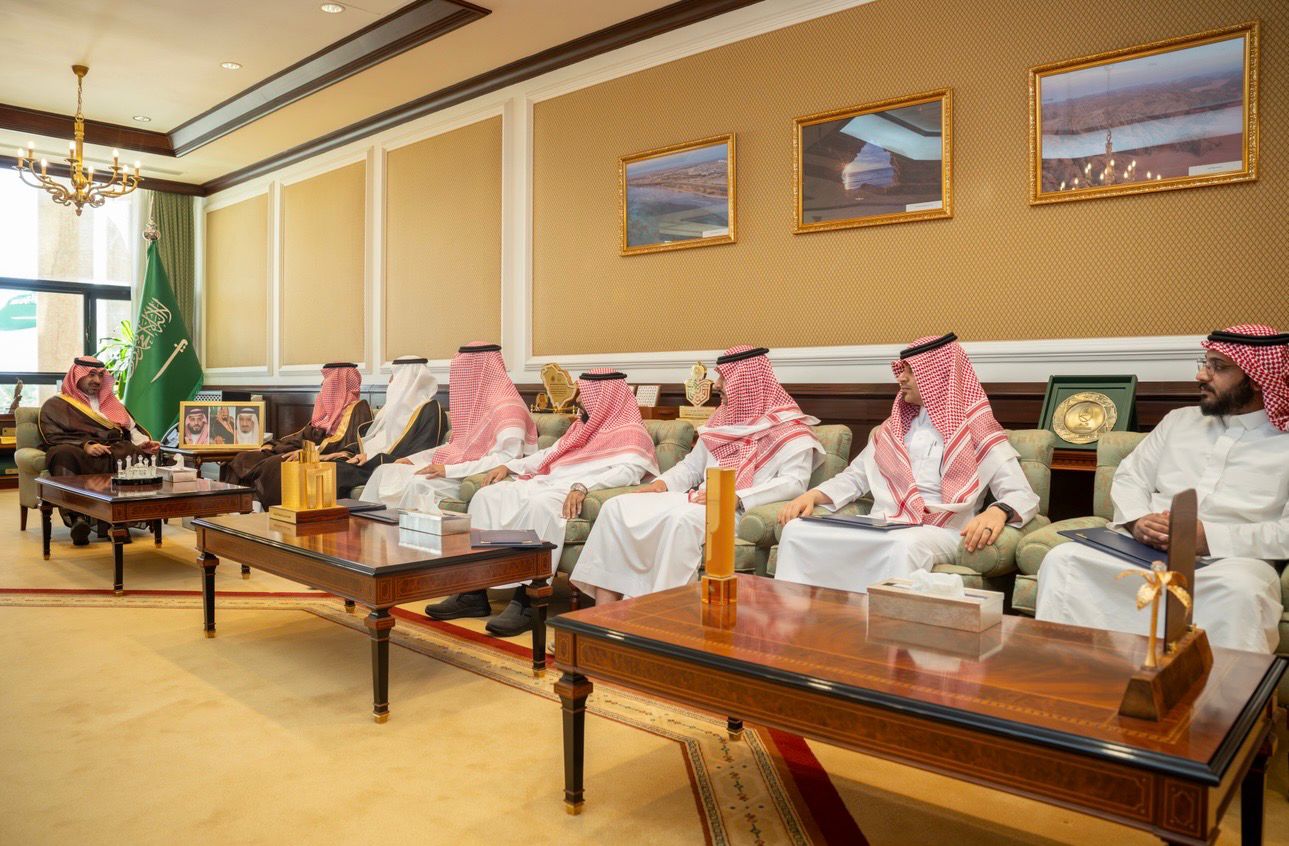 استقبل صاحب السمو الملكي الأمير خالد بن سعود بن عبدالله الفيصل بن عبدالعزيز، نائب أمير منطقة تبوك، في مكتبه بالإمارة اليوم، رئيس جامعة تبوك الأستاذ الدكتور عبدالعزيز بن سالم الغامدي، يرافقه عددٌ من منسوبي الجامعة والطلاب الفائزين في معرض جنيف الدولي للاختراعات لعام 2026م.