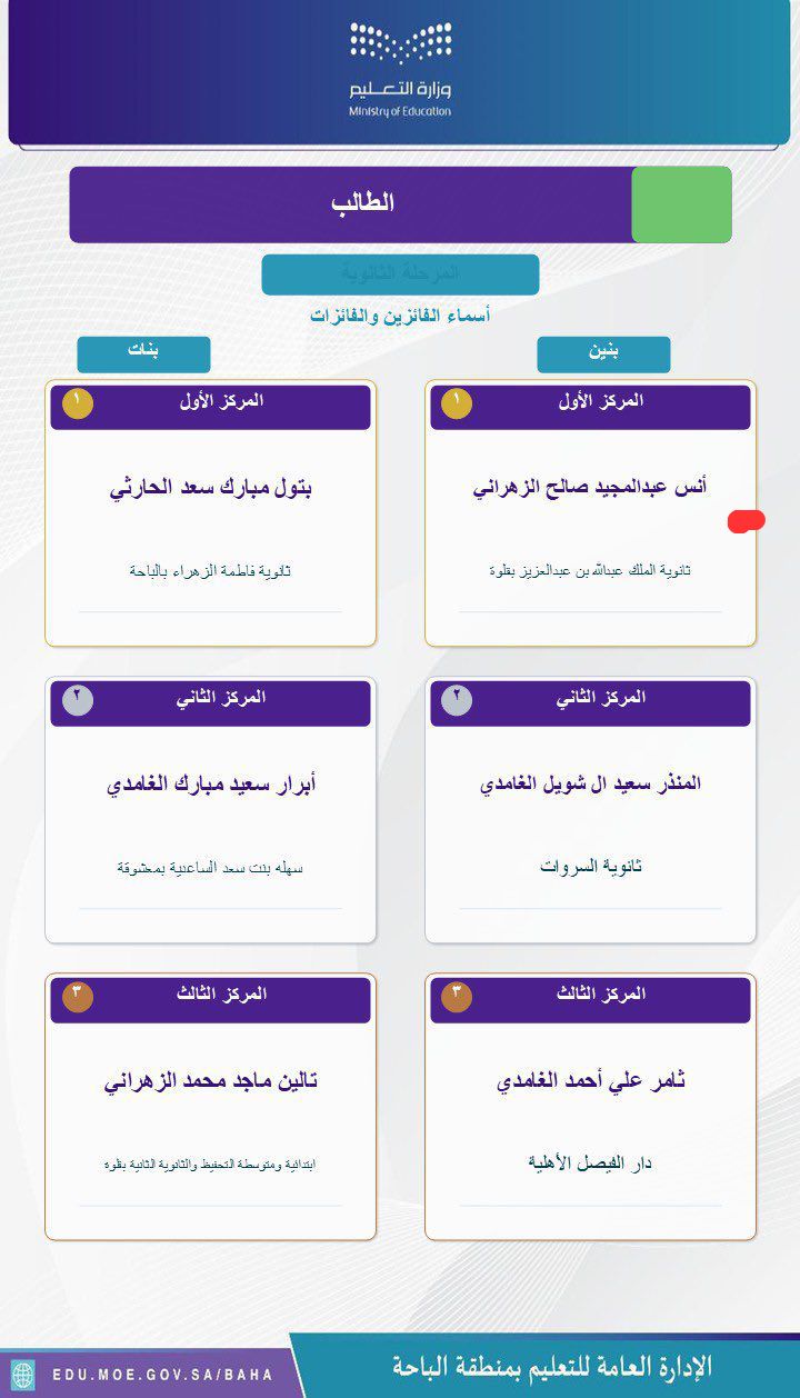 فاز الطالب أنس بن عبدالمجيد الغبيشي المركز الأول في جائزة الشيخ الدرمحي للتميّز التعليمي – فرع الطالب المتميّز، ضمن منافسات الجائزة التي أطلقتها إدارة تعليم منطقة الباحة، بدعم من أوقاف الدرمحي وبمباركة سمو أمير المنطقة –حفظه الله– حيث تبلغ قيمة الجائزة للفائز بالمركز الأول (8000) ريال.