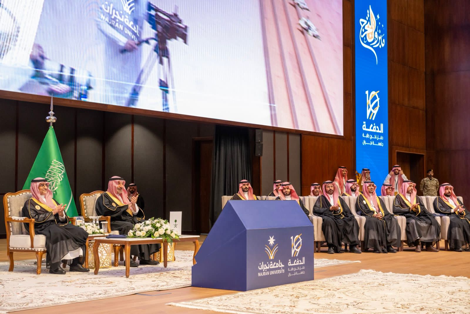 رعى صاحب السمو الأمير جلوي بن عبدالعزيز بن مساعد، أمير منطقة نجران اليوم، حفل تخريج 5872 طالبًا وطالبة بجامعة نجران، بحضور وكيل إمارة المنطقة ماهر بن صالح المونس، والقيادات العسكرية والمدنية، وعدد من المشايخ وأولياء الأمور، وذلك بمركز الأمير جلوي بن عبدالعزيز للمؤتمرات بالجامعة.