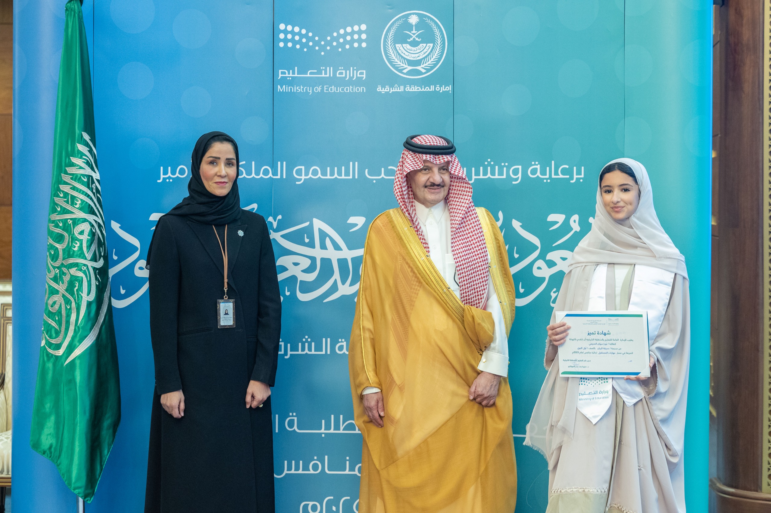وأكد سمو أمير المنطقة الشرقية أن ما يحظى به قطاع التعليم من دعمٍ كريم من القيادة الرشيدة “أيدها الله” يعكس اهتمامها بالاستثمار في الأجيال وتعزيز قدراتهم، بما يسهم في إعداد جيلٍ مؤهلٍ للمشاركة في مسيرة التنمية، مشيراً سموه إلى أن تميز الطلبة يعكس تكامل الأدوار بين الأسرة والمدرسة، والدور المحوري للمعلمين والمعلمات في تنمية القدرات، وأن الجوائز التحفيزية تسهم في ترسيخ ثقافة التميز والتنافس الإيجابي، وتعزز من اكتشاف المواهب ورعايتها، مهنئاً سموه الطلاب والطالبات على ما حققوه من إنجازات.
