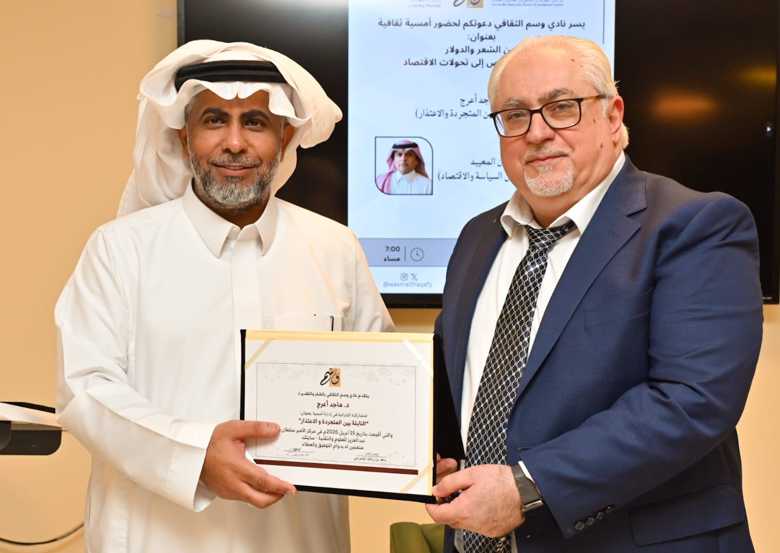 وفي ختام الأمسية، كرّم نادي وسم الثقافي الضيفين تقديرًا لمشاركتهما القيّمة، في لفتة تعبّر عن اعتزاز النادي بضيوفه وبرامجه النوعية.