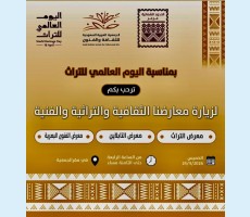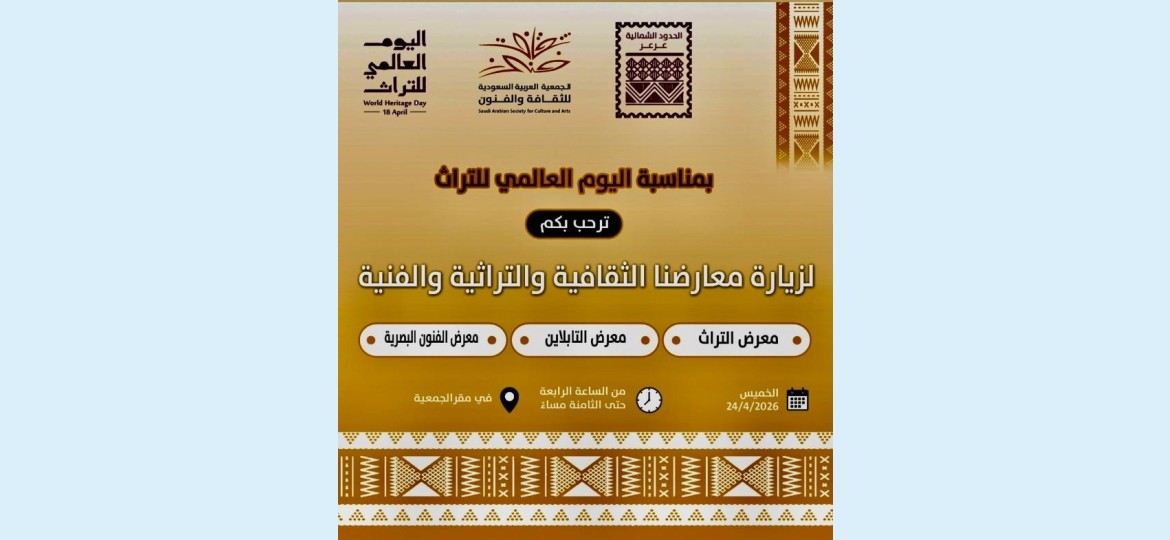 تنظم جمعية الثقافة والفنون بمنطقة الحدود الشمالية، يوم الخميس المقبل، عدداً من المعارض والأركان احتفاءً باليوم العالمي للتراث 2026، وذلك بمقر الجمعية في مدينة عرعر.