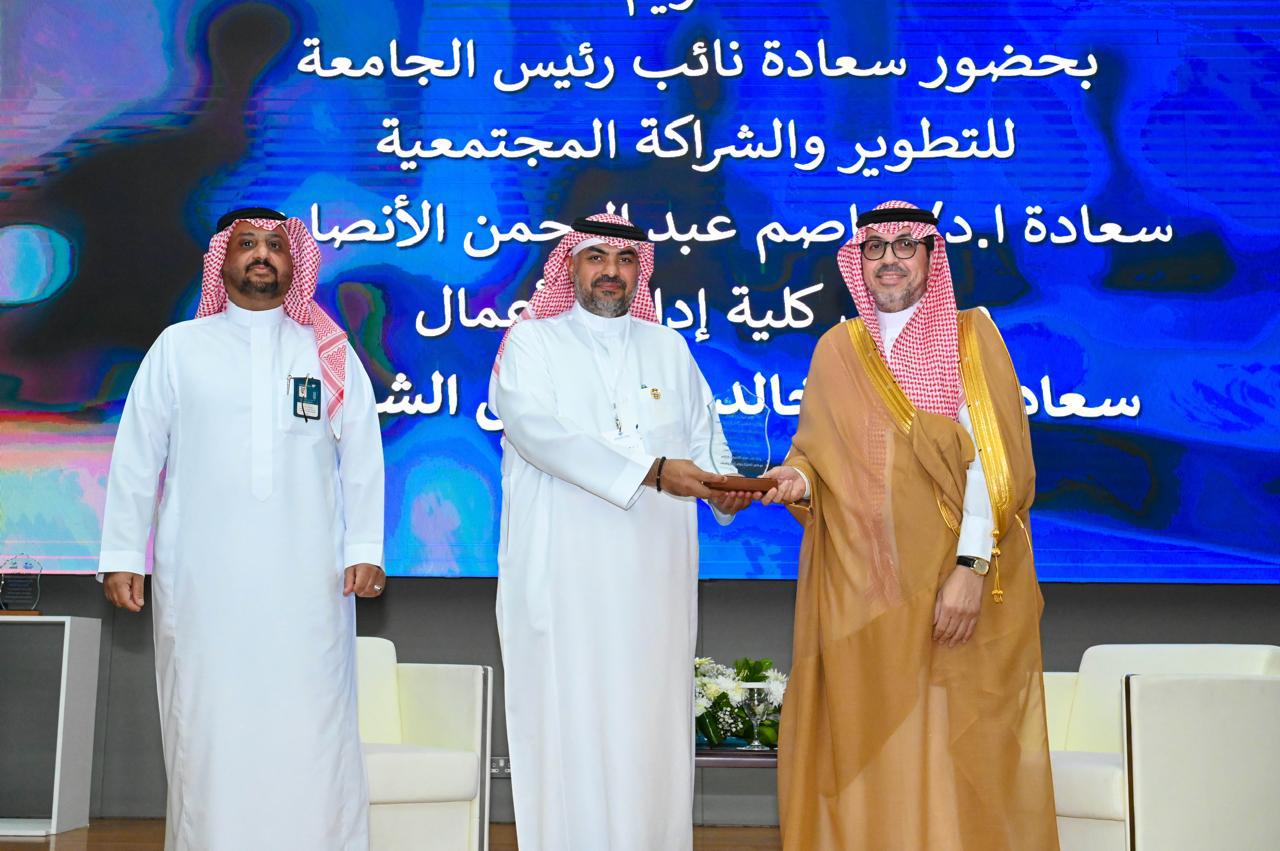 وذكر الدكتور خالد الشهري بأن هذا الملتقى يأتي امتدادًا لدور الجامعة في دعم المبادرات النوعية، وتعزيز الوعي بالمفاهيم التي ترسّخ حاضرنا وتبني مستقبلنا بإذن الله وإن الحديث عن جودة الحياة والتربية المستدامة يرتبط ارتباطًا وثيقًا بمجالات إدارة الأعمال؛ حيث تسهم إدارة الوعي، والاقتصاد المستدام، واتخاذ القرار المسؤول في بناء مجتمعات مزدهرة ومستقرة. ومن هذا المنطلق، يبرز دور كلية إدارة الأعمال، ممثلةً في وكالة التطوير والشراكة المجتمعية، كشريك استراتيجي في تفعيل هذه الرؤية، من خلال مواءمة جهودها مع رؤية الجامعة، وبناء جسور التعاون مع مختلف القطاعات، وتفعيل المبادرات التي تعزز التنمية المستدامة وتخدم المجتمع.