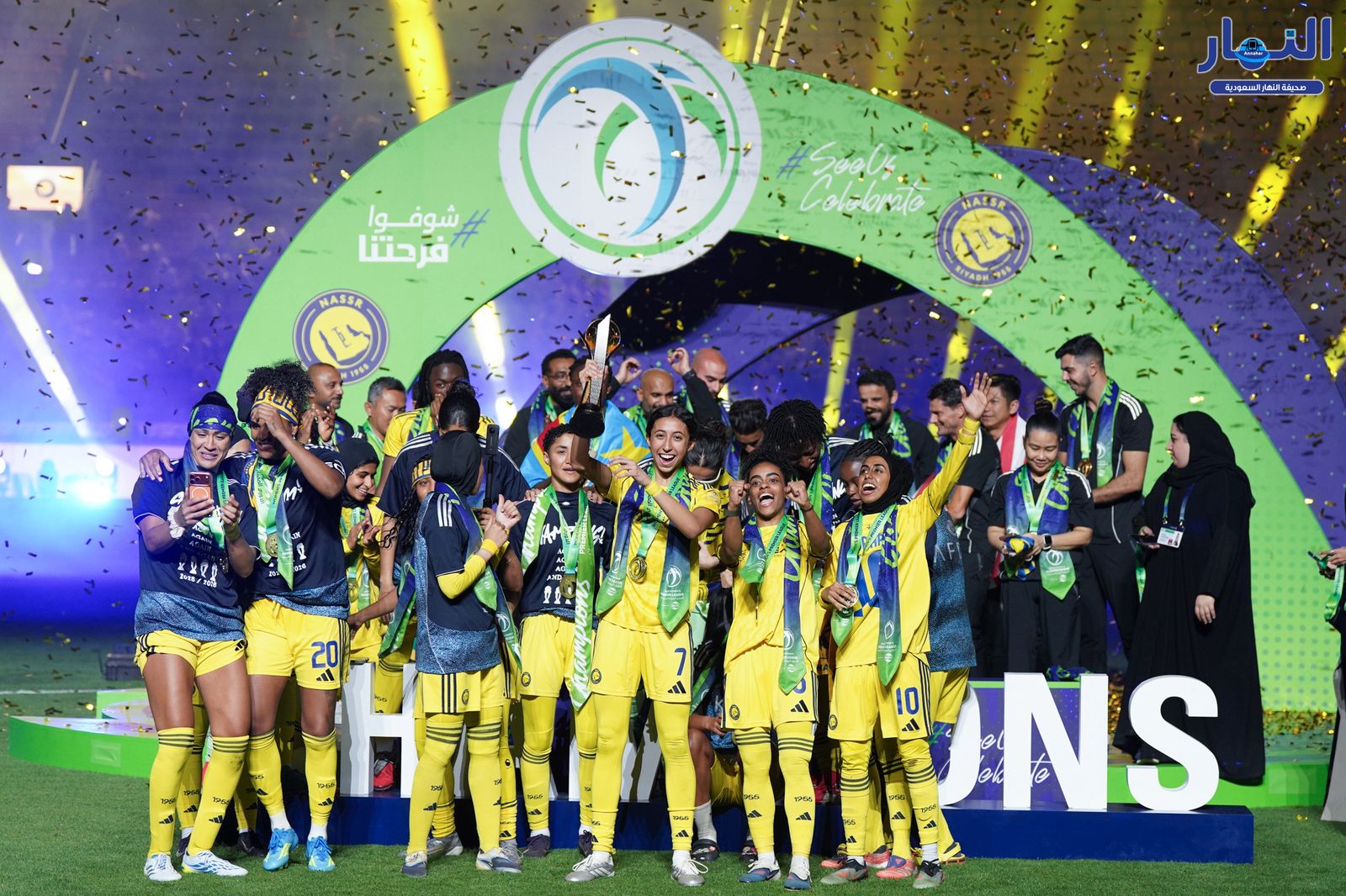 تُوِّج فريق نادي النصر للسيدات بلقب الدوري الممتاز لموسم 2025–2026، عقب فوزه الكبير على نادي العلا بنتيجة 5-1، في المواجهة الختامية التي احتضنها ملعب الأول بارك.