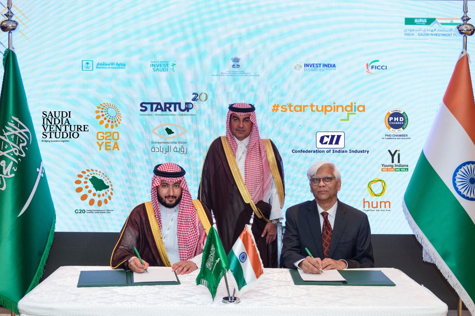 وقّع صاحبُ السموِّ الملكي الأمير فهد بن منصور بن ناصر بن عبدالعزيز ال سعود رئيس مجموعة الشركات الناشئة السعودية STARTUP20 ، ورئيس اتحاد رواد الأعمال الشباب في مجموعة العشرين G20YEA مذكرة تفاهم مع الجهات المعنية بمنظومة ريادة الاعمال الهندية، تتعلق بتعزيز التعاون الاقتصادي بين المملكة العربية السعودية وجمهورية الهند. وذلك على هامش المنتدى الاستثماري السعودي الهندي، والذي عقد في العاصمة الهندية، بالتزامن مع زيارة سمو ولي العهد الامير محمد بن سلمان الرسمية للهند مؤخرا. كما تم أيضاً اطلاق منصة جسر الشركات الناشئة بين السعودية والهند (Saudi Indian Startup Bridge) لتجسير الترابط بين الشركات الناشئة بين البلدين.