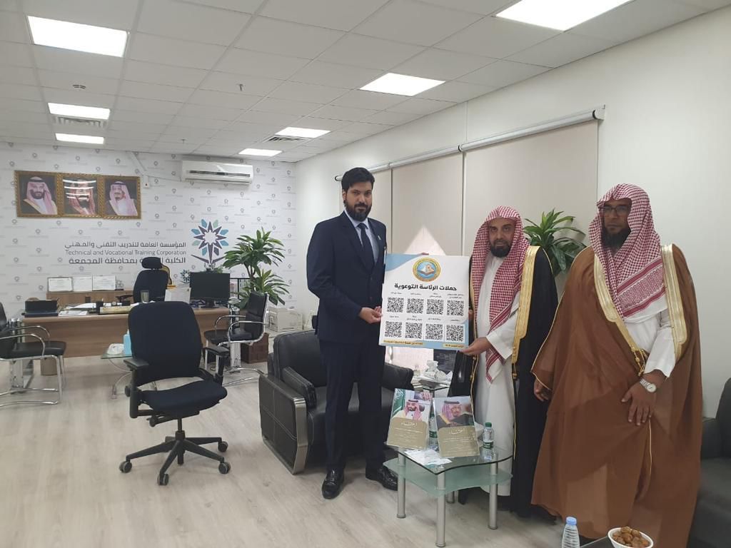 كما زار "البغيغيل" عميد كلية التقنية بالمجمعة ثامر العتيبي لتفعيل الحملة التوعوية، وشاركت الهيئة في مهرجان التمور الرابع بروضة سدير، وفعاليات القافلة الزراعية الإرشادية في حديقة الممشى بالمجمعة، من خلال معرض توعوي ووقائي، يحوي حملات الرئاسة العامة التوعوية، وإصداراتها العلمية بتقنية "QR”.