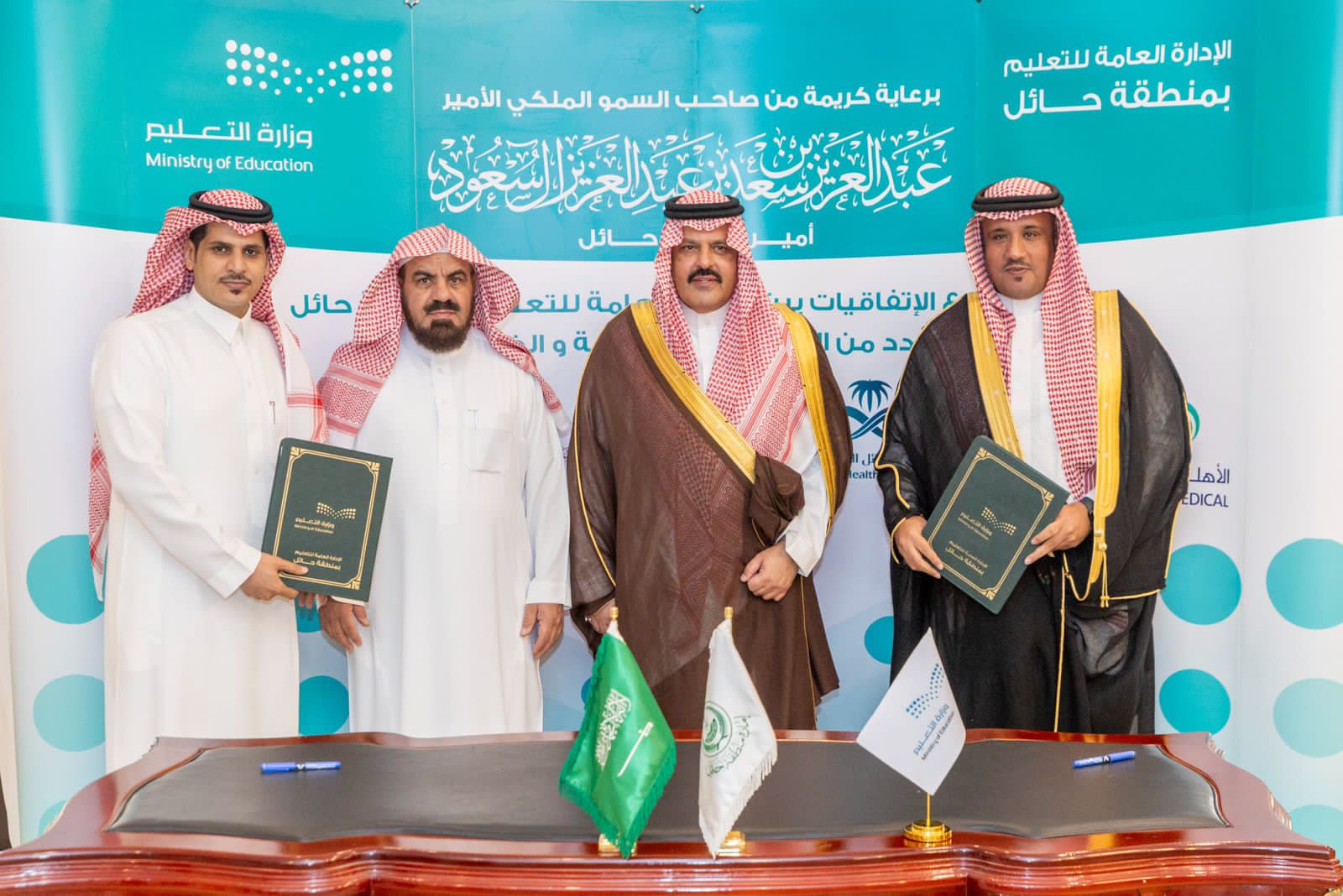 و شهد سمو الأمير عبد العزيز بن سعد توقيع اتفاقية لتعليم حائل مع تجمع حائل الصحي ، والتي تهدف إلى تحسين جودة الحياة و تحقيق أعلى درجات الصحة النفسية لمنسوبي التعليم من خلال تعزيزها والوقاية من إشكالاتها ، ومشاركة الطرفين في وضع البرامج التدريبة للمستفيدين من منسوبي التعليم حسب المرحلة دراسية وتقديم الاستشارات الطبية ، والتدخل المبكر للعلاج بالتنسيق مع الإدارة المعنية في إدارة التعليم بالمنطقة.