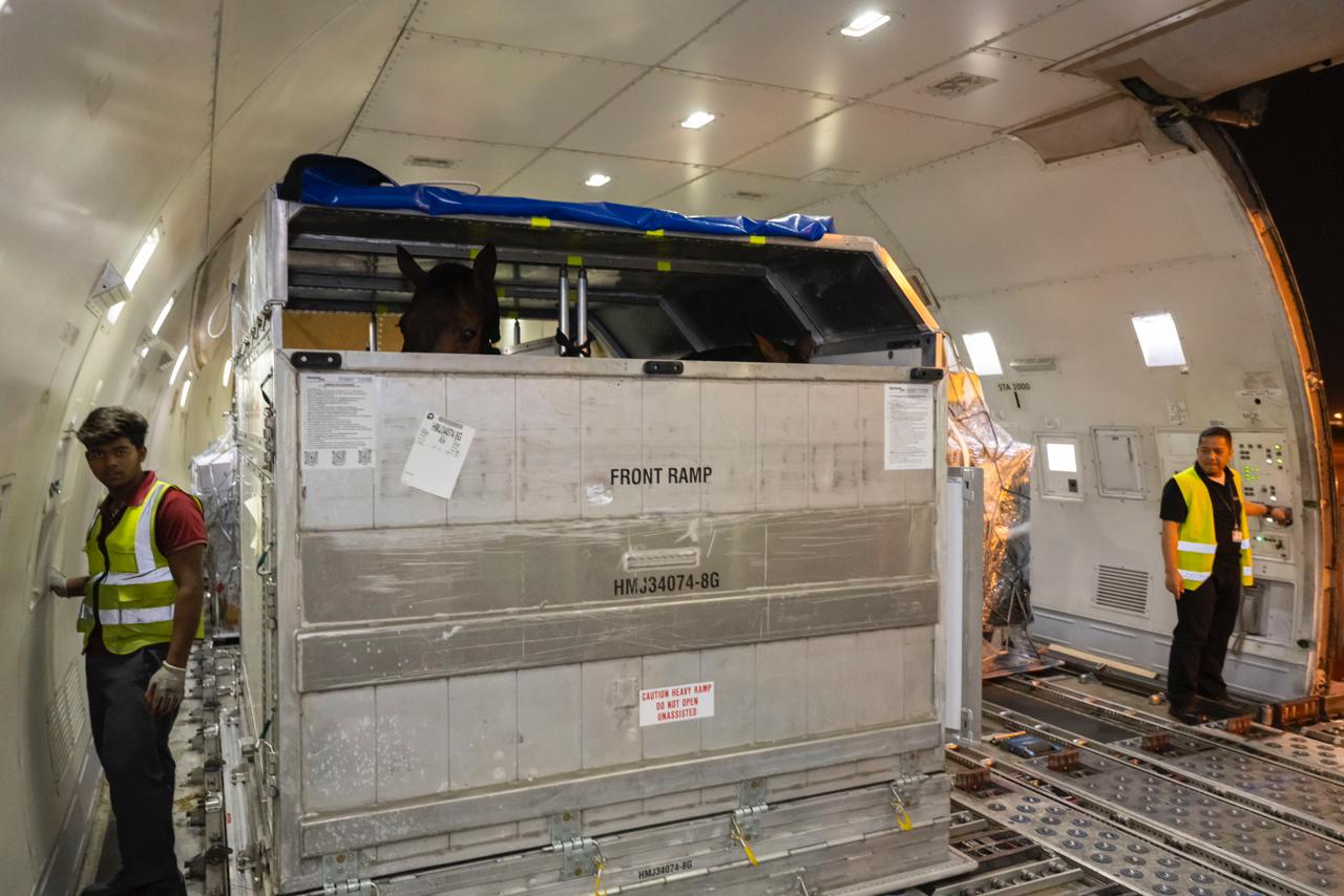 اكتمل وصول الخيول الأوروبية المشاركة في الجولة الختامية لبطولة لونجين العالمية لقفز الحواجز، والتي بلغ عددها 96 جواداً نقلت بطائرتين من بلجيكا إلى مطار الملك خالد الدولي في الرياض.