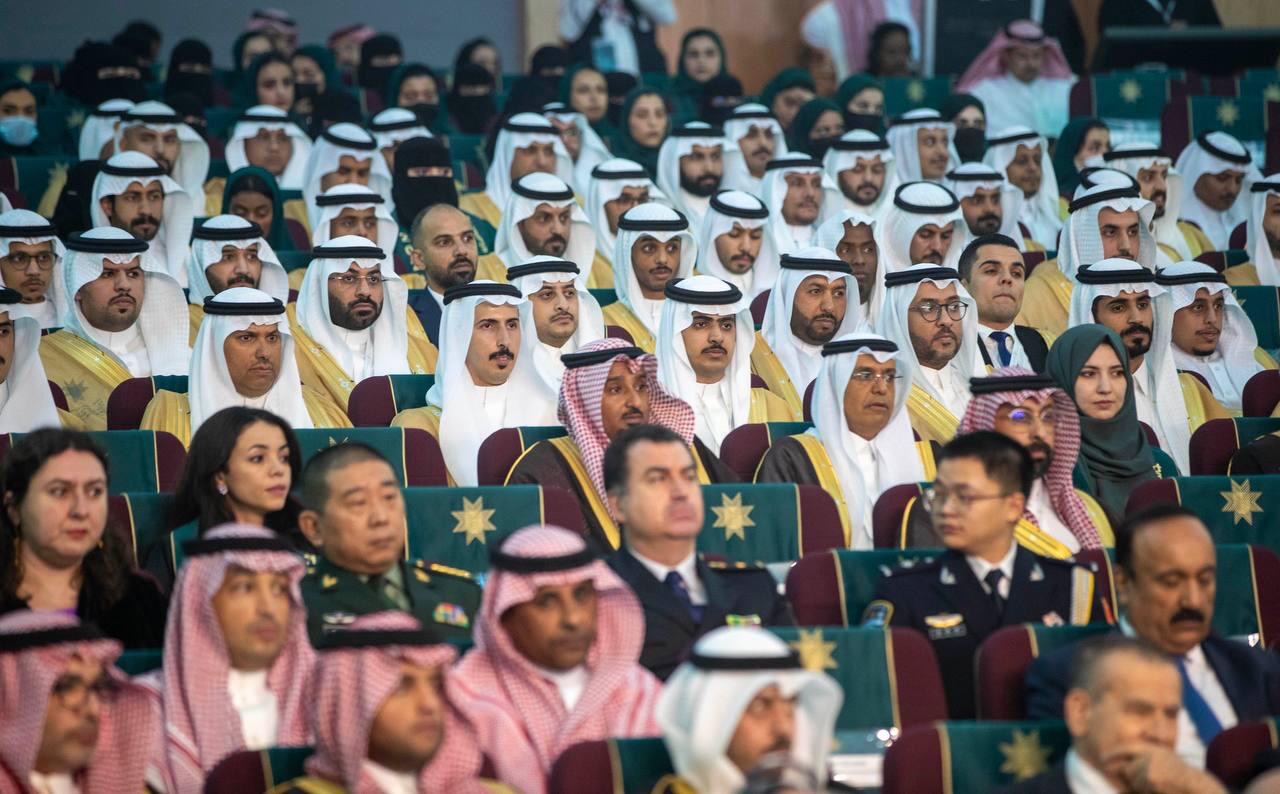 وعبر الخريجون من جانبهم في كلمتهم التي ألقاها الخريج بندر صياح المطيري عن شكرهم للأمير عبدالعزيز بن سعود على حضوره حفل تخرجهم، وتكريم أوائل الخريجين.