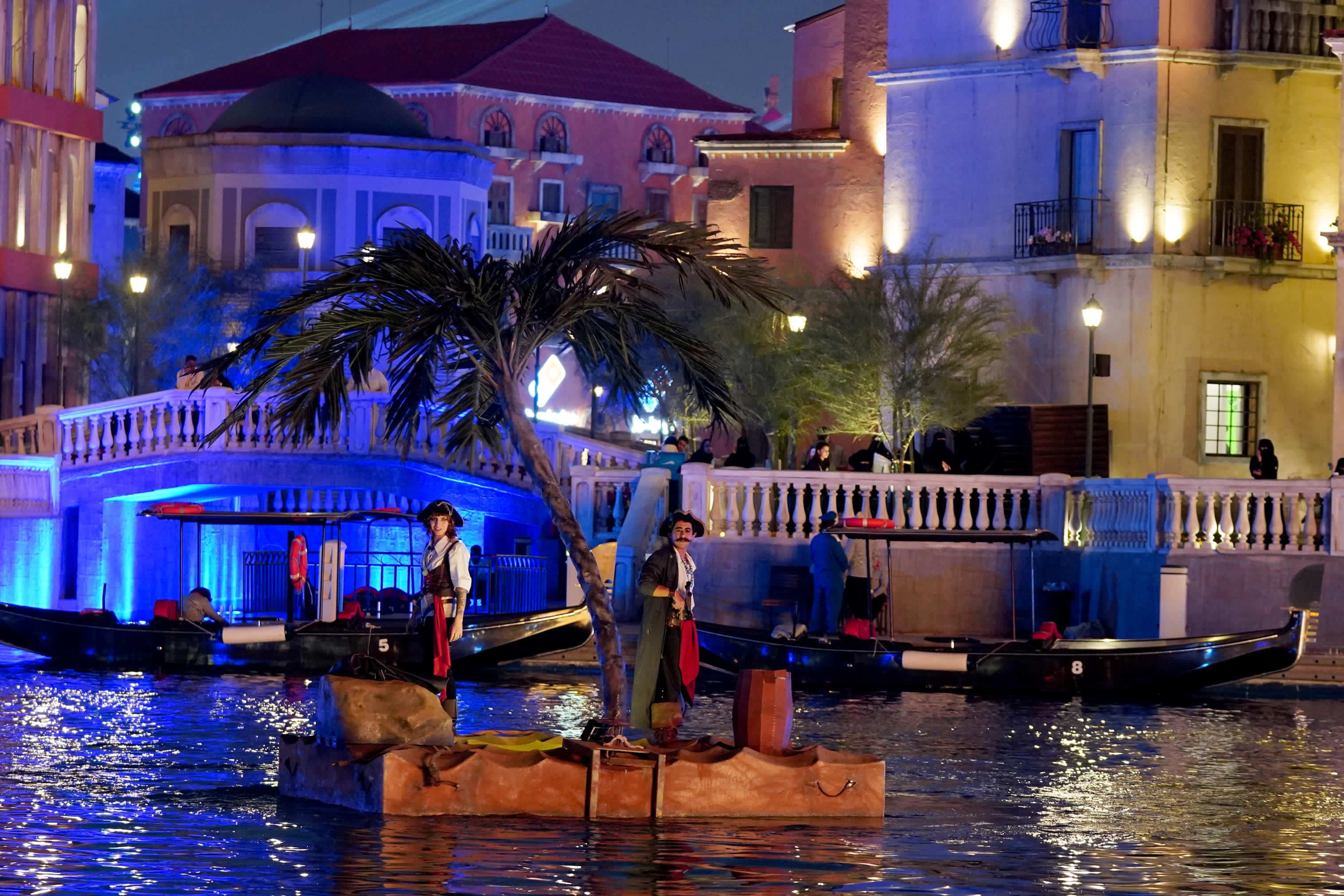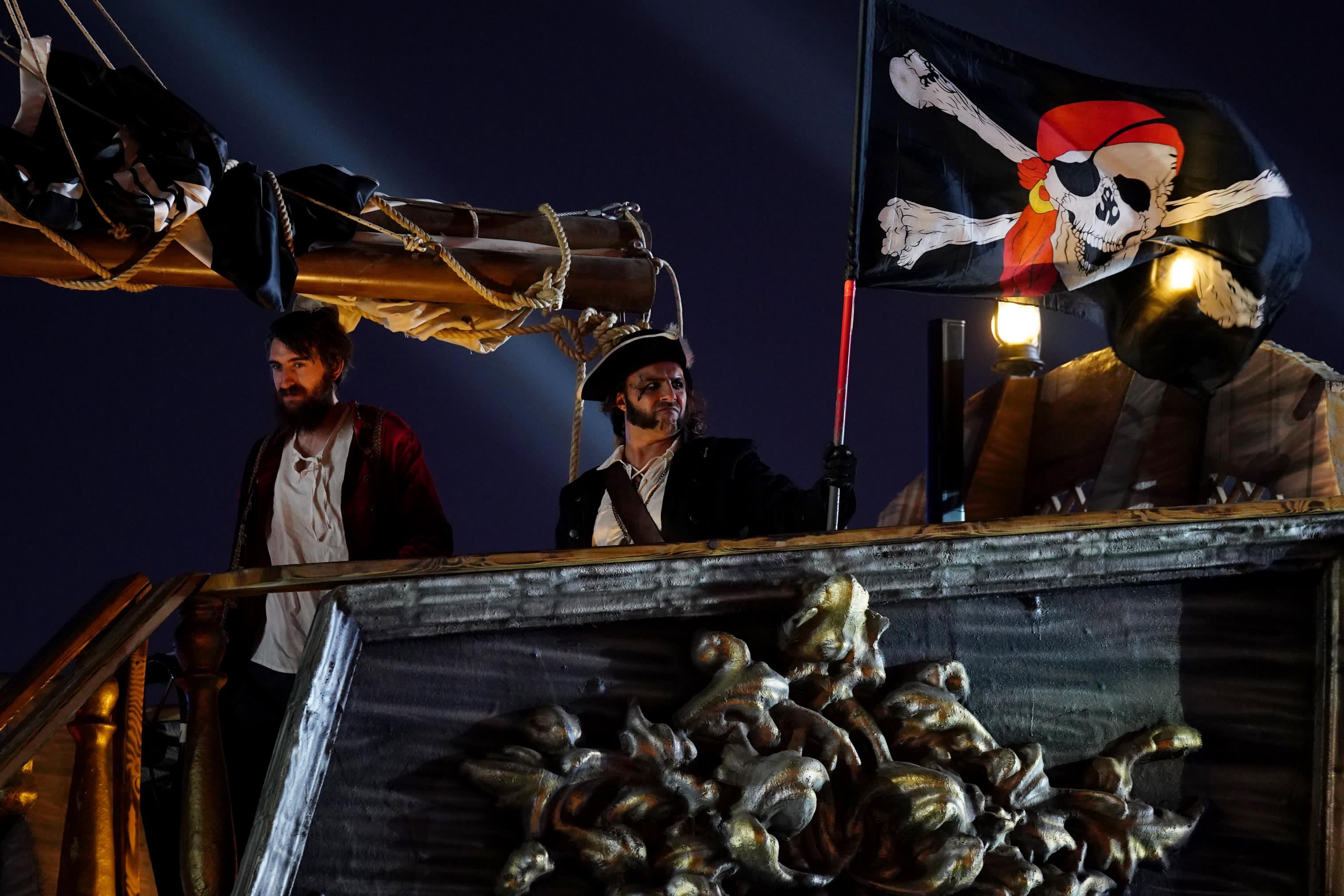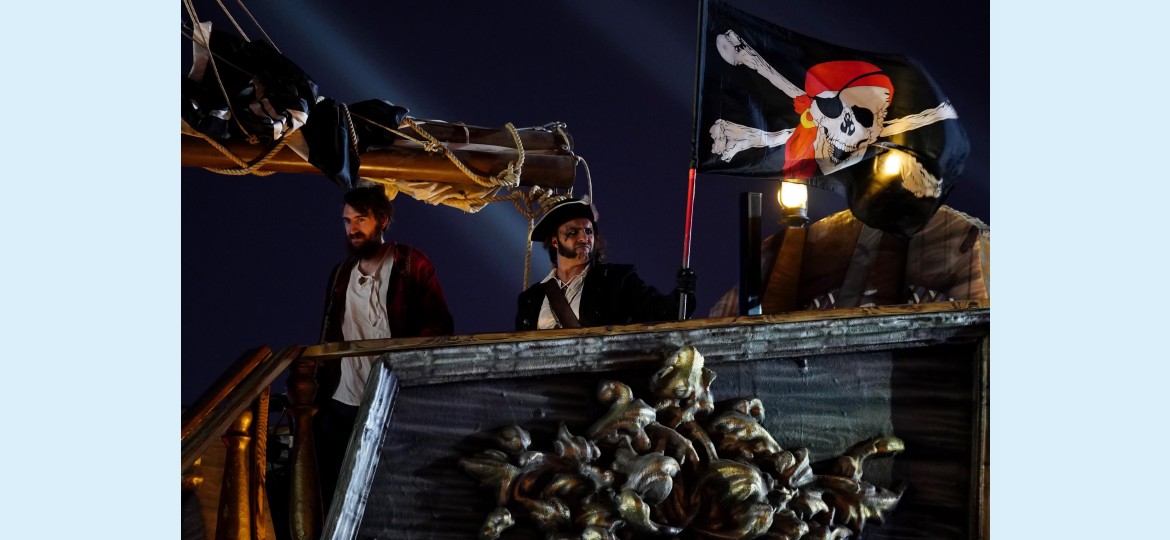 ويتضمن العرض عدداً من القراصنة الذين يتخذون من سفينة قديمة ومهجورة مملؤة بالصدأ مقراً لهم، ويظهرون بمجموعة من الألبسة التي تحاكي الأزياء الشهيرة لأفلام القراصنة العالمية.