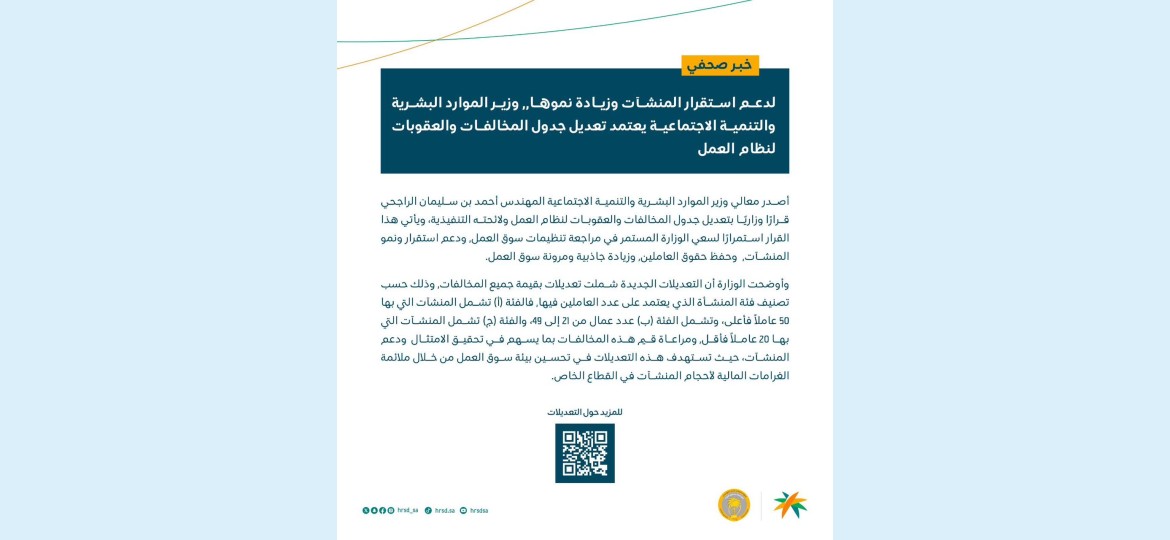 ويمكن الاطلاع على نص القرار من خلال الرابط التالي: hrsd.gov.sa/node/5566108
