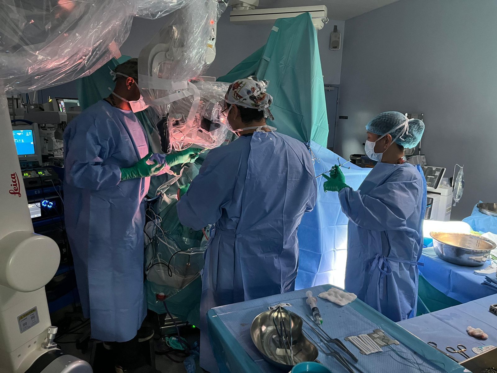 من جهته، أوضح الاستشاري المعالج من جراحة المخ والأعصاب الدكتور باسم نور إلهي، أن خطورة هذه العملية تكمن في موقع الورم، الواقع بالقرب من منطقة الكلام وبجوار منطقة الحركة، ما استدعى إجراء الجراحة والمريضة مستيقظة للتقييم المباشر لوظائف الكلام والحركة، الأمر الذي يتطلب فريقًا طبيًا متمكنًا من قسم التخدير وجراحة المخ والأعصاب وتجهيزات طبية متقدمة، مؤكدًا أن مثل هذه العمليات تتطلب استئصال أكبر قدر ممكن من الورم مع المحافظة على الوظائف الحيوية للمخ.