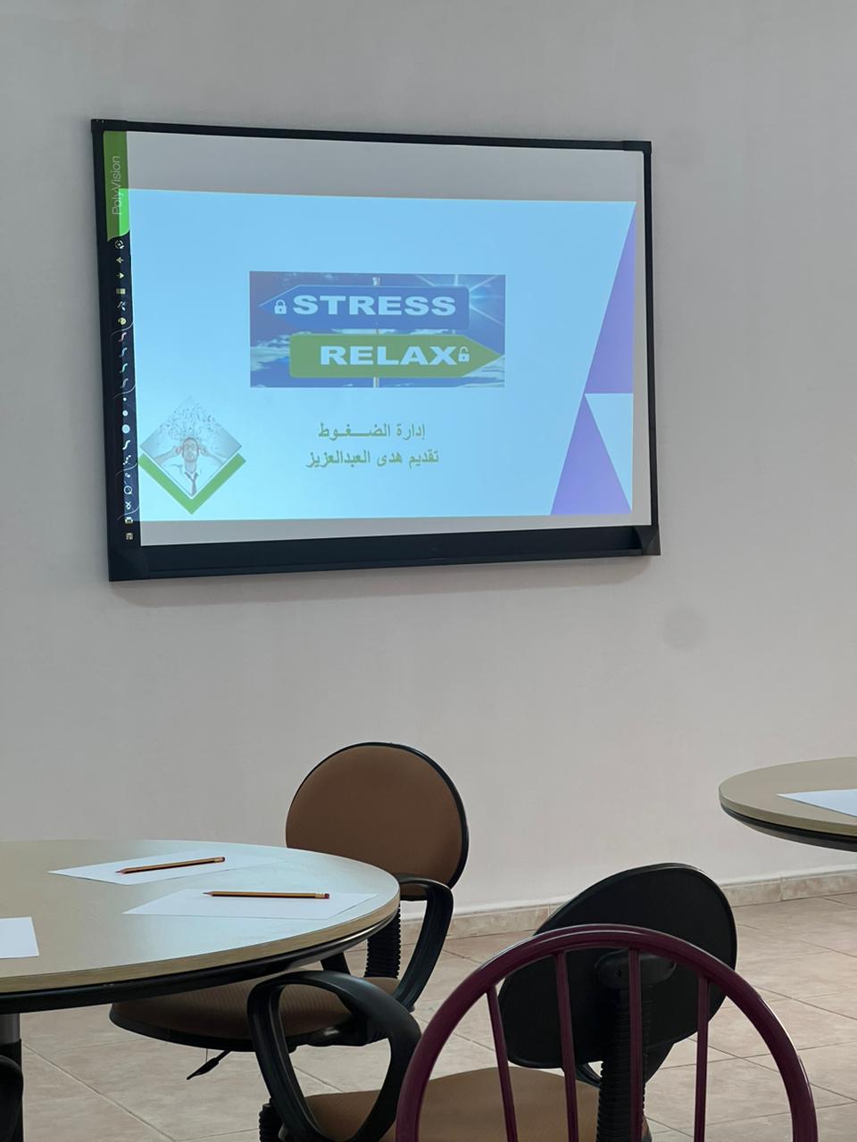بدأت العبدالعزيز البرنامج بعرض مرئي حول إدارة الضغوط، ثم طرحت تمرين عن قياس مستوى الضغط ، وتخلل البرنامج مداخلات واستفسارات المتدربات مما أثرى البرنامج.