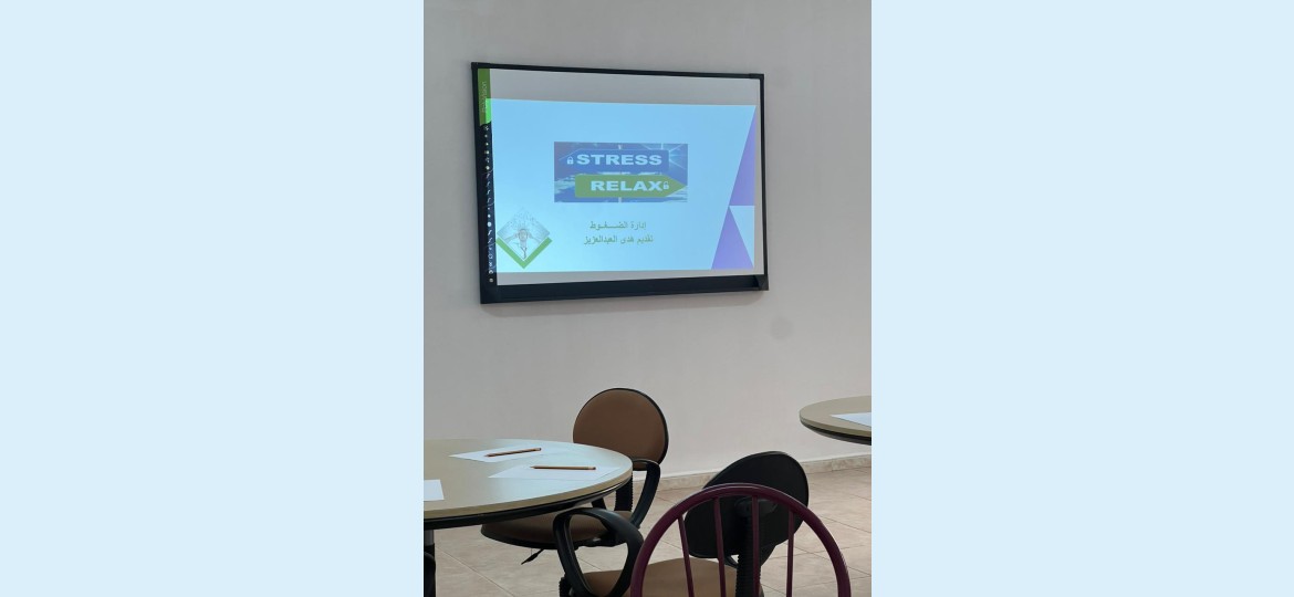 من هذا المنطلق نفذت مؤسسة رعاية الفتيات بالأحساء التابعة لوزارة الموارد البشرية والتنمية الاجتماعية ورشة تدريبيه " إدارة الضغوط " من تقديم الأخصائية الاجتماعية هدى علي العبدالعزيز.