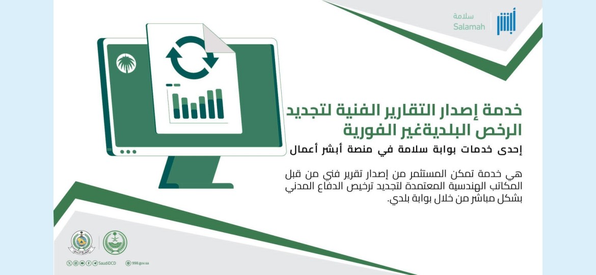 وتأتي "خدمة إصدار التقارير الفنية للرخص متعددة السنوات" لإتاحة إصدار تقرير فني من قبل المكاتب الهندسية المعتمدة بشكل سنوي طيلة مدة ترخيص الدفاع المدني للمستثمرين، وذلك للتراخيص التي تزيد مدتها عن سنة، إضافة إلى "خدمة إصدار التقارير الفنية لتجديد الرخص البلدية غير الفورية"، وهي خدمة تتيح للمستثمرين إصدار تقرير فني من قبل المكاتب الهندسية المعتمدة لتجديد ترخيص الدفاع المدني مباشرة من خلال بوابة بلدي.