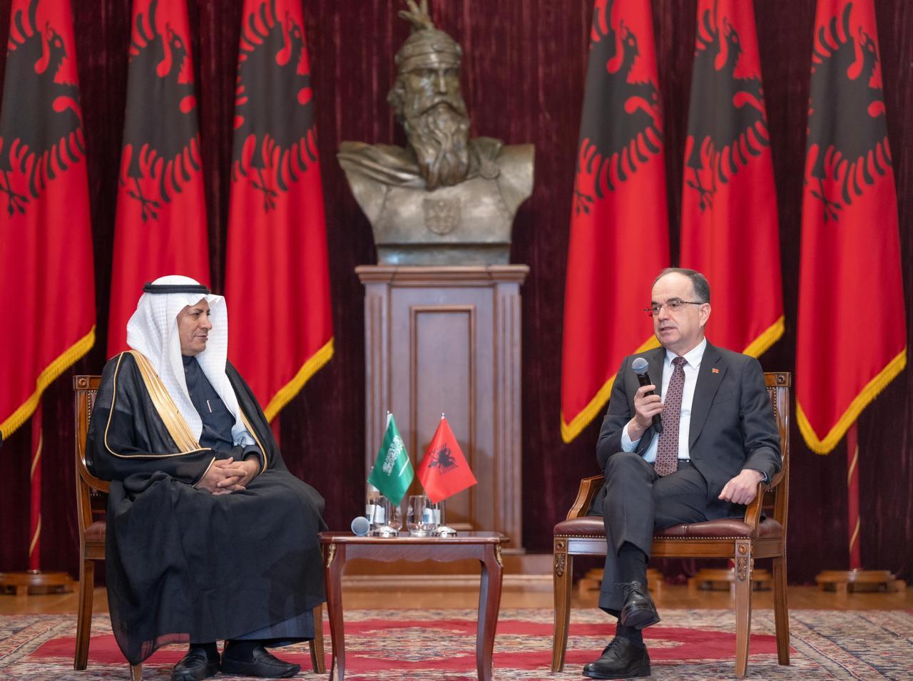 جاء ذلك خلال لقاء فخامته، بالعاصمة تيرانا اليوم، وفد اتحاد الغرف السعودية برئاسة حسن بن معجب الحويزي رئيس الاتحاد، برفقة عدد من المستثمرين وممثلي بعض الجهات الحكومية والخاصة.