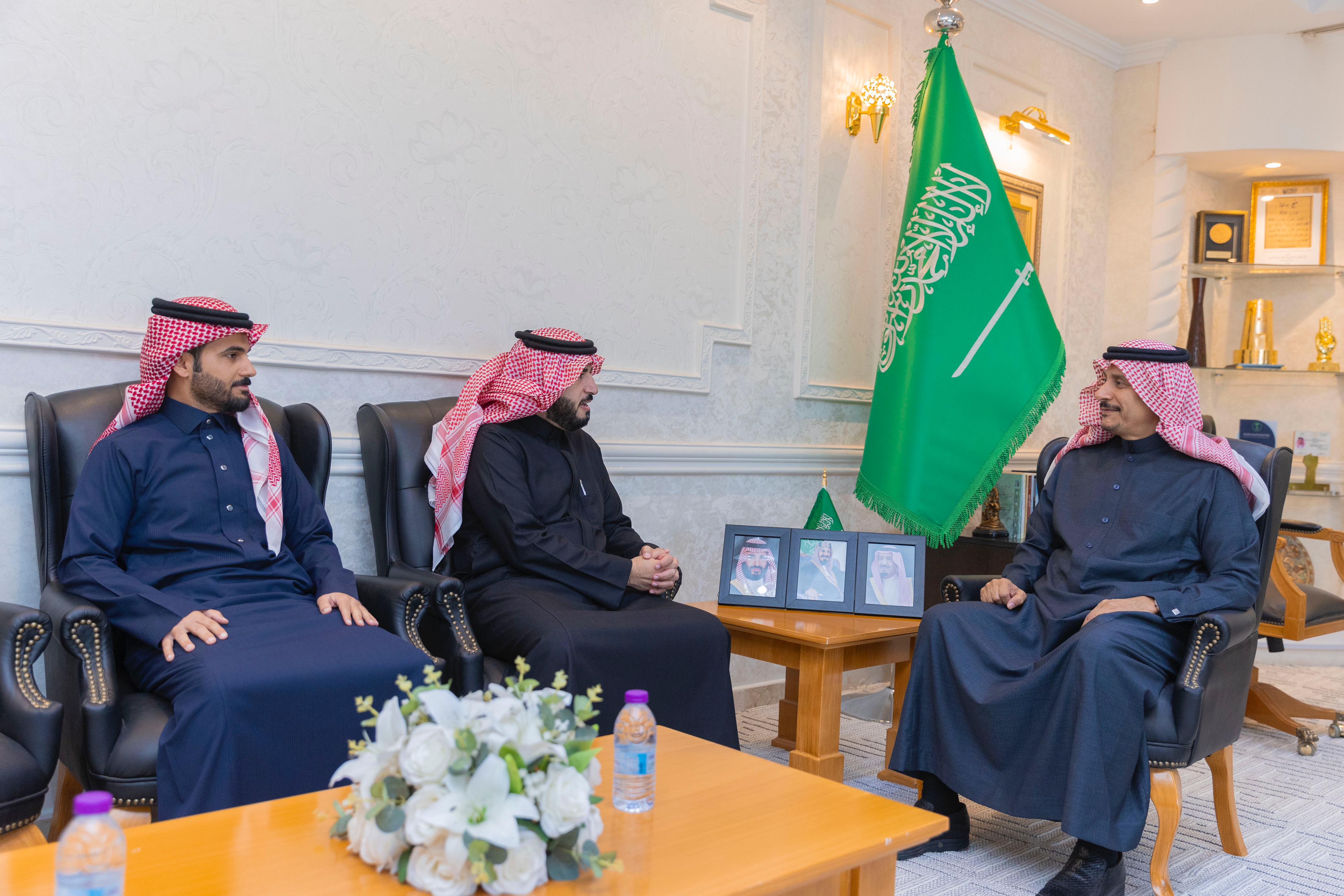 استقبل صاحب السمو الأمير عبدالرحمن بن عبدالله بن فيصل محافظ حفرالباطن، في مكتبه،الدكتور خالد الهويدي رئيس نادي الباطن وعضو مجلس الادارة عوض العنزي.