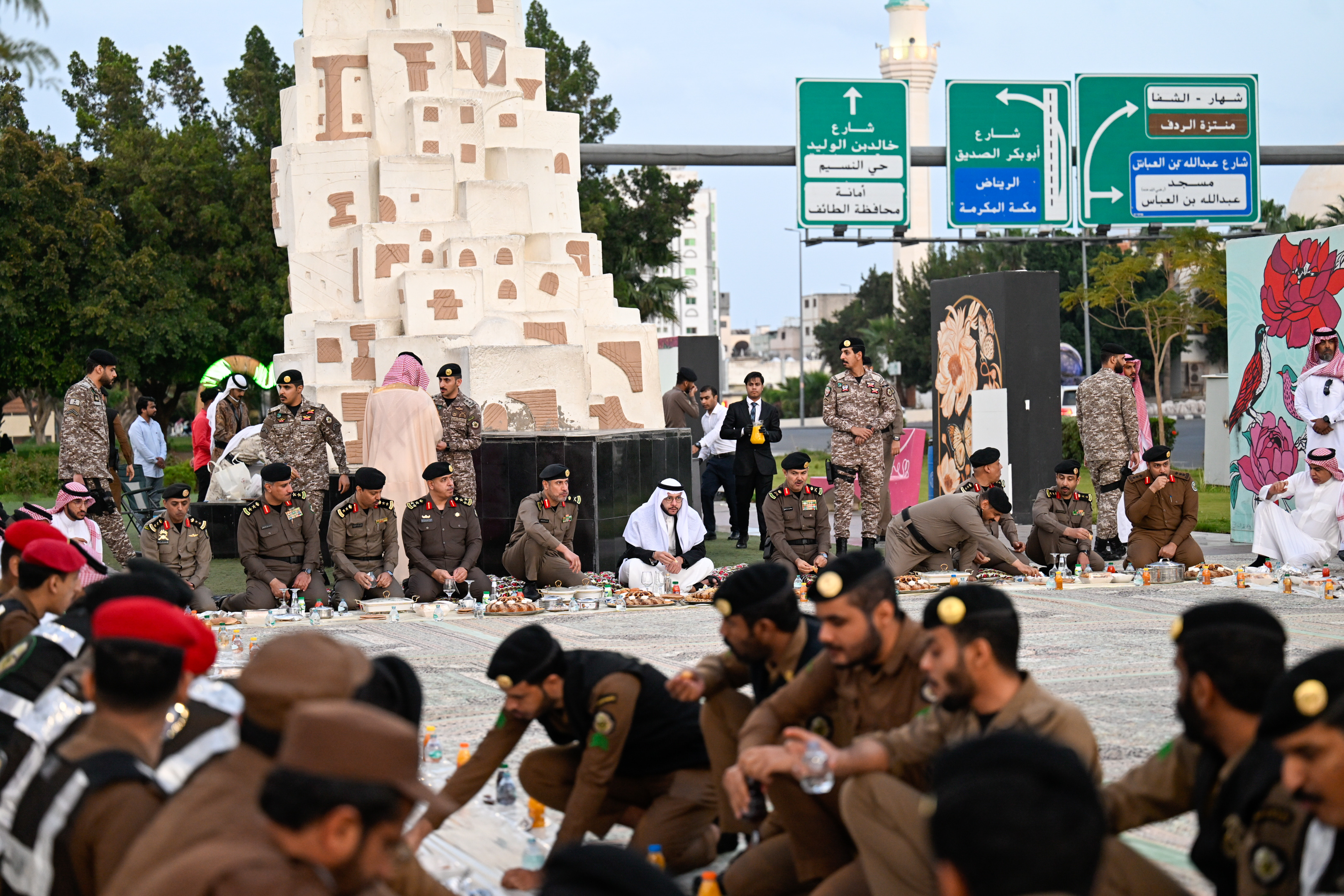 شارك صاحبُ السموِّ الملكي الأمير سعود بن نهار بن سعود بن عبدالعزيز، محافظ الطائف قادة ومنسوبي القطاعات الأمنية بالمحافظة, إفطارهم الرمضاني في ميدان باب الحزم بالطائف.