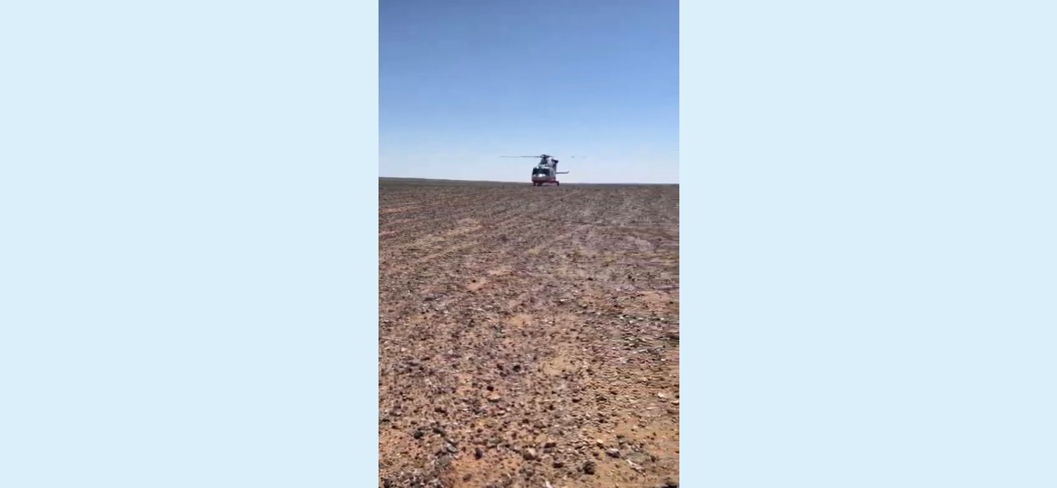 نقل الإسعاف الجوي التابع لفرع هيئة الهلال الأحمر بمنطقة الجوف , مصابين اثنين في حادث انقلاب مركبة بمنطقة صحراوية إلى قسم الطوارئ بالمستشفى خلال 13 دقيقة .