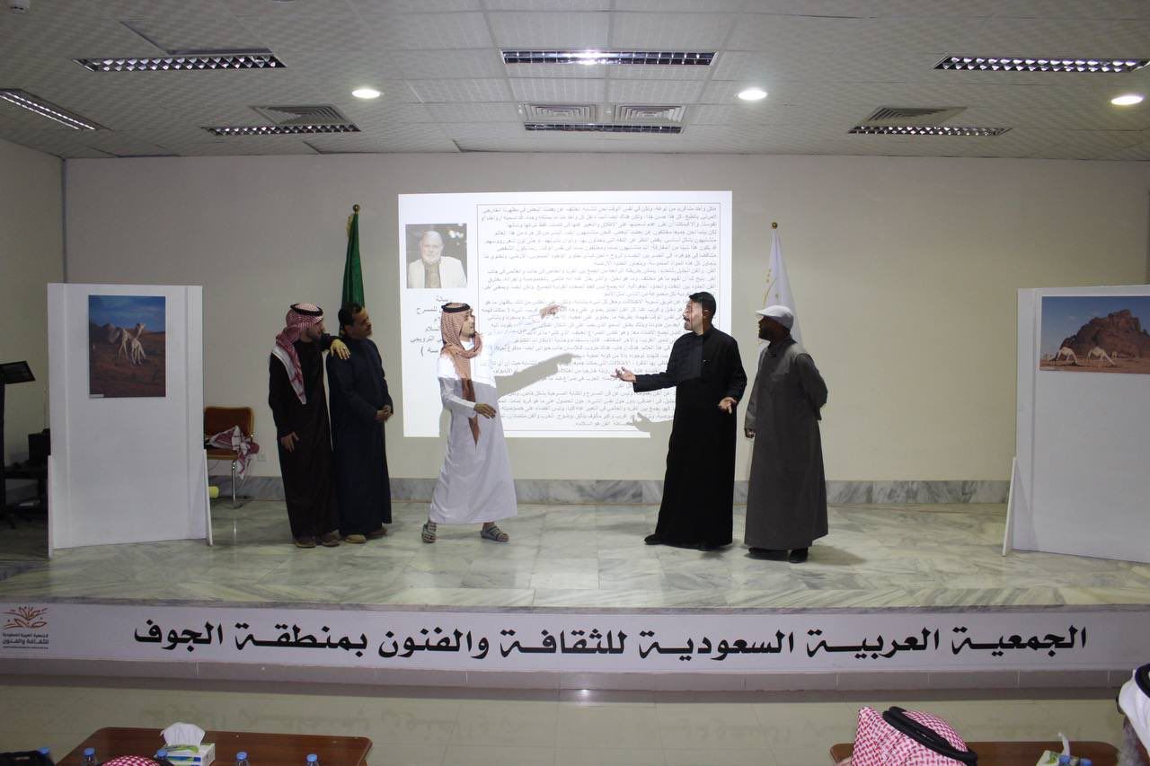 نظمت الجمعية العربية السعودية للثقافة والفنون بمنطقة الجوف برنامج الاحتفال باليوم العالمي للمسرح، والذي يصادف السابع والعشرين من مارس لكل عام، بفعاليات وورشة عمل في مقر الجمعية بمدينة سكاكا، بحضور أعضاء لجنة المسرح من ممثلين وكتاب مسرحيين وعدد من الهواة.