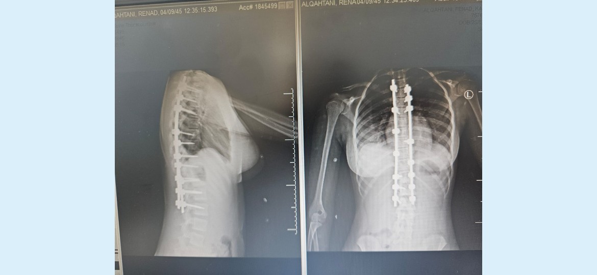 وأوضح تجمع عسير الصحي نطاق بيشة ، أن الطفله حضرت إلى المستشفى وبعد عمل الأشعة والتحاليل اللازمة شٌخصت الحالة على أنها جنف شديد مع وجود صعوبة في أداء وممارسة الأنشطة اليومية ومشكلات في النوم نتيجة إصابتها بانحرافٍ شديدٍ في العمود الفقري (الجنف) منذ الطفوله.