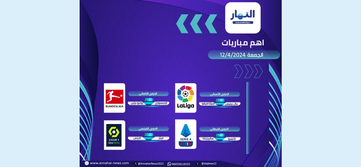 تنطلق مساء الجمعة جولة جدبدة في مختلف الدوريات الأوربية ، وفيما يلي أهم المباريات