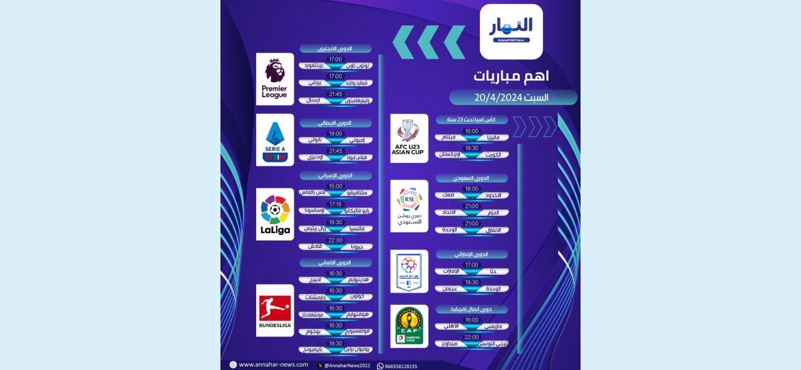 تختتم منافسات الجولة الـ28 من الدوري السعودي بثلاث مباريات ، ويحل ارسنال ضيفاً على وليفرهامتون في الدوري الانجليزي ؛ وفيما يلي أبرد المباريات :