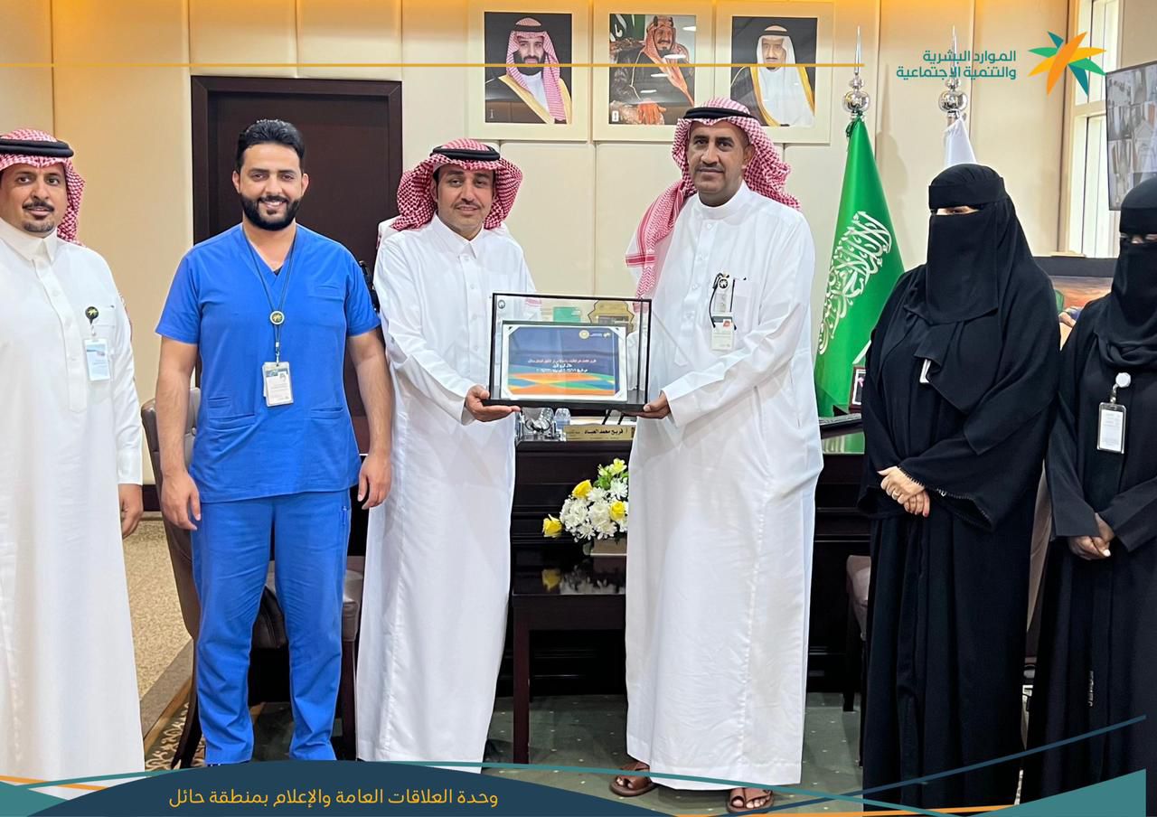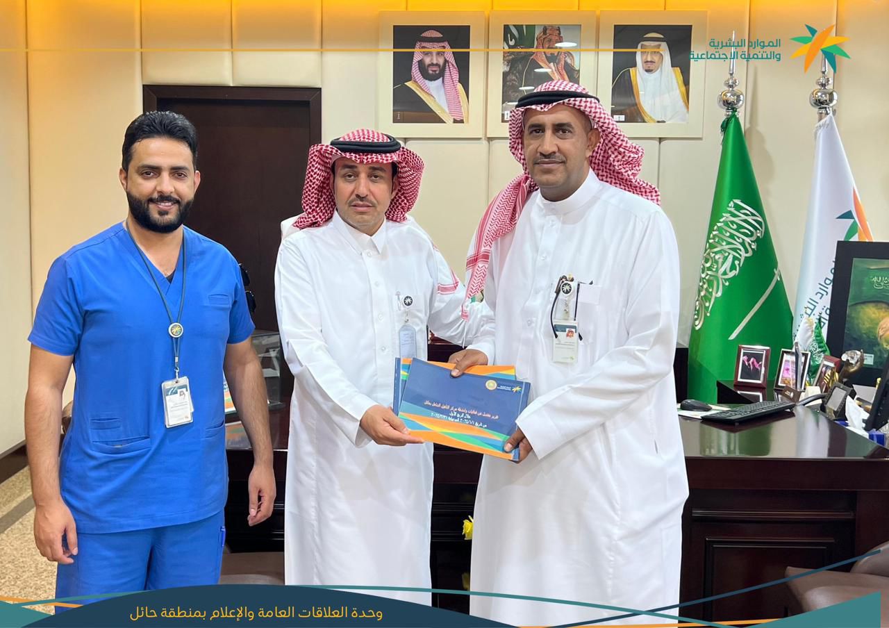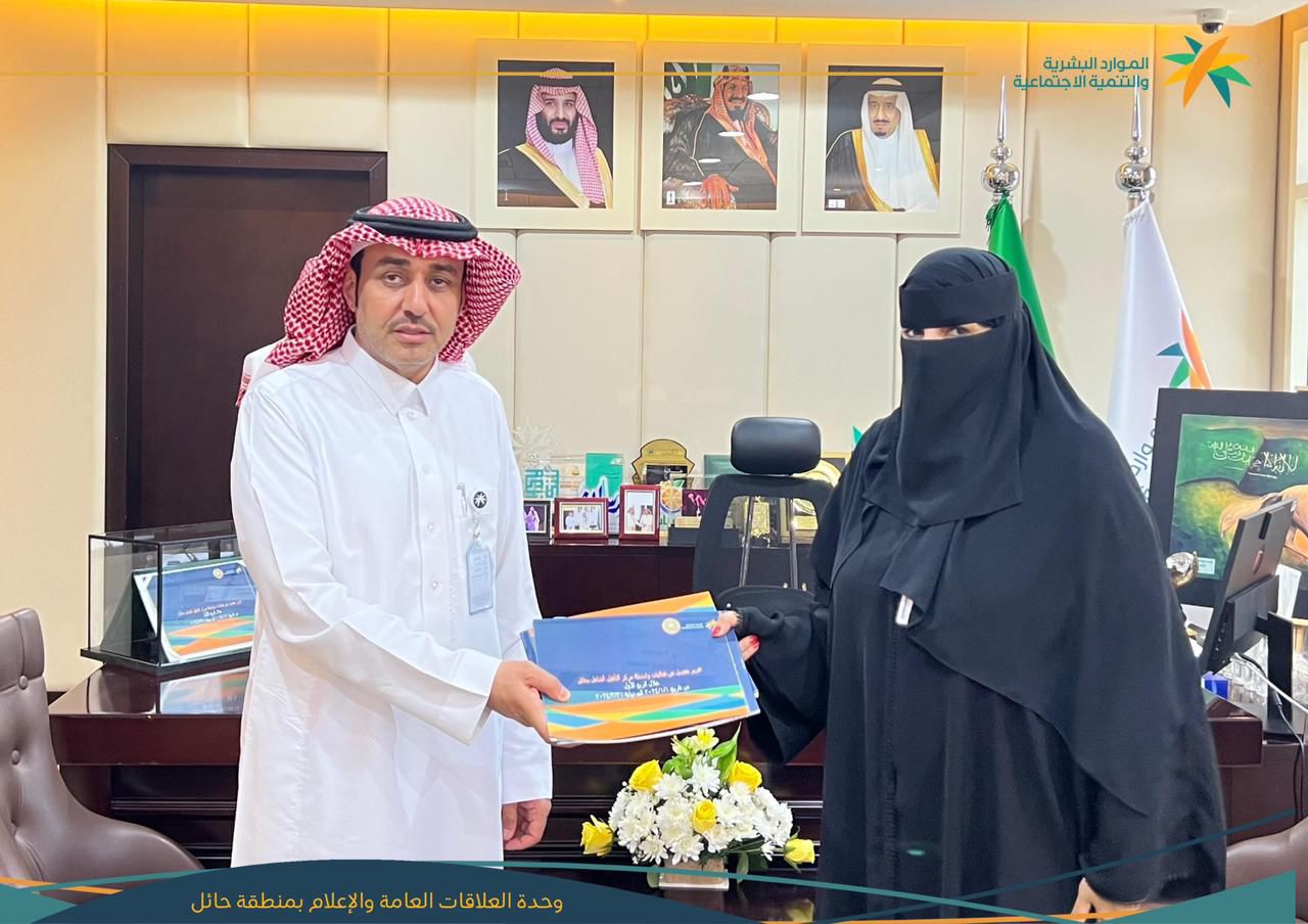 تسلّم سعادة مدير عام فرع وزارة الموارد البشرية والتنمية الاجتماعية بمنطقة حائل فريح بن محمد العيّاد تقرير الربع الأول للعام 2024 الخاص بمركز التأهيل الشامل من مدير المركز حمود الهديرس وبحضور مشرفة القسم النسائي بالمركز هدى الجهني والاخصائية الاجتماعية ماجدة طالب ورئيس وحدة التأهيل المجتمعي بالمركز عبدالله الهمزاني ورئيس وحدة العلاج الطبي سعود العديم.