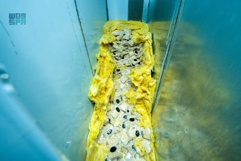 وأوضحت الهيئة أنه وردت إرسالية للمملكة من خلال منفذ البطحاء، عبارة عن "أفران تُستخدم للتحميص" محمولة على إحدى الشاحنات القادمة، وعند خضوعها للإجراءات الجمركية، والكشف عليها عبر التقنيات الأمنية، عُثر على تلك الكمية من الحبوب ضمن الإرسالية، بحيث جرى إخفاؤها داخل " تجاويف الأفران".