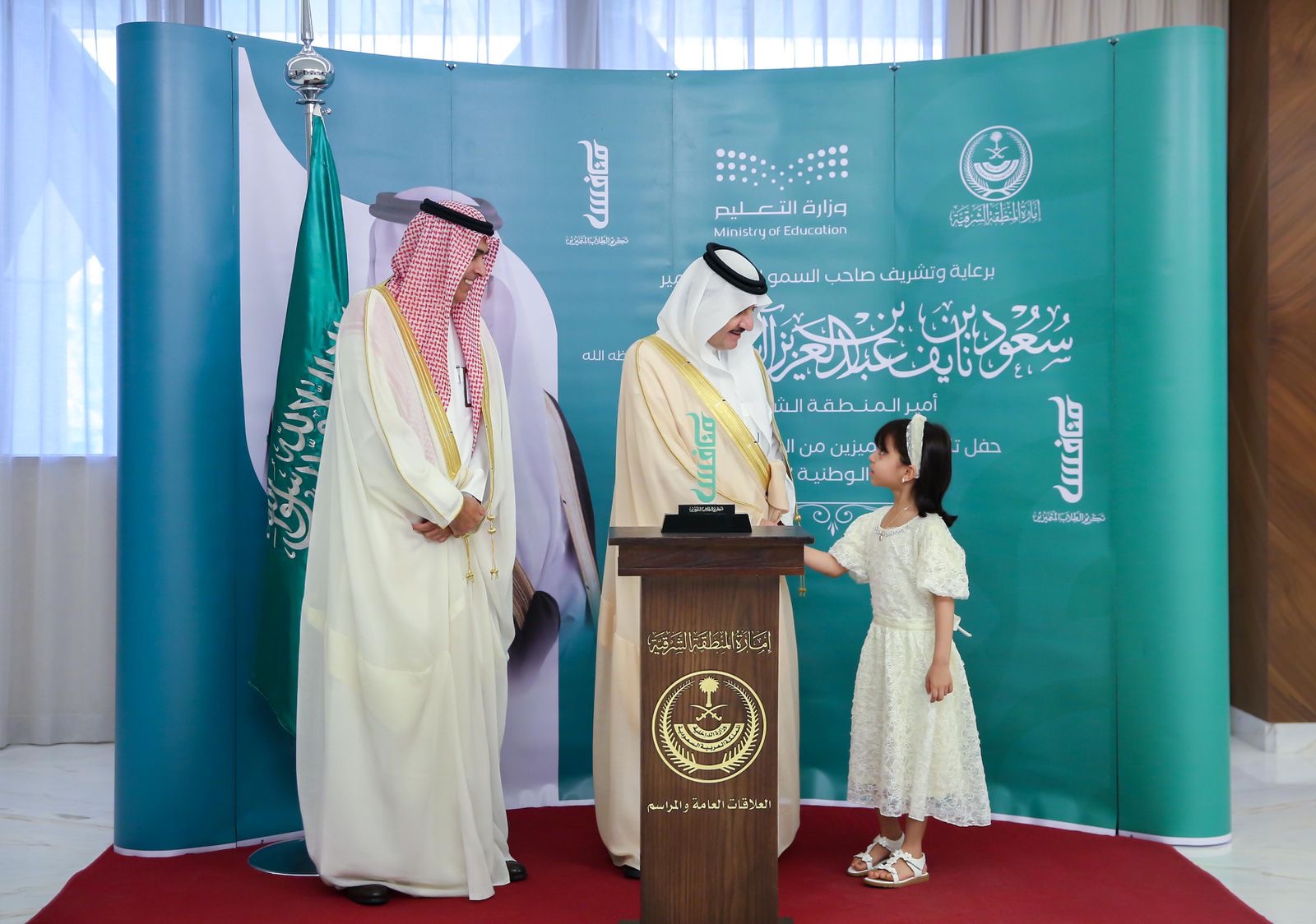 كرّم صاحب السمو الملكي الأمير سعود بن نايف بن عبدالعزيز أمير المنطقة الشرقية بديوان الأمارة اليوم الأحد الطلاب والطالبات المتميزين والفائزين بالجائزة الوطنية (منافس) بتعليم المنطقة الشرقية، والتي أطلقتها وزارة التعليم في نسختها الأولى، وتأتي ضمن الجوائز المواكبة لبرنامج تنمية القدرات البشرية من أجل بناء طلاب متميزين ومبادرين ومنافسين عالمياً، كما تهدف إلى اكتشاف الطلاب المتميزين في عدد من المسارات لتساهم في تحسين نواتج التعلم ورعاية المواهب ودعم الإبتكار والإبداع الريادي .